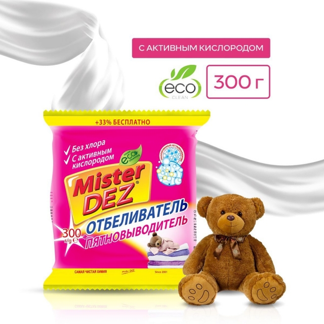 Главная > Бытовая химия > Отбеливатель-пятновыводитель Mister Dez Eco-Cleaning с активным кислородом, 300г х 1шт
